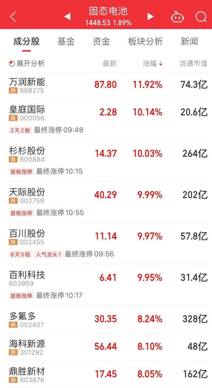 今天上午,锂电产业链上涨,固态电池、盐湖提锂等板块上涨,宁德时代上涨2.52%,天赐材料、多氟多等龙头股大涨。