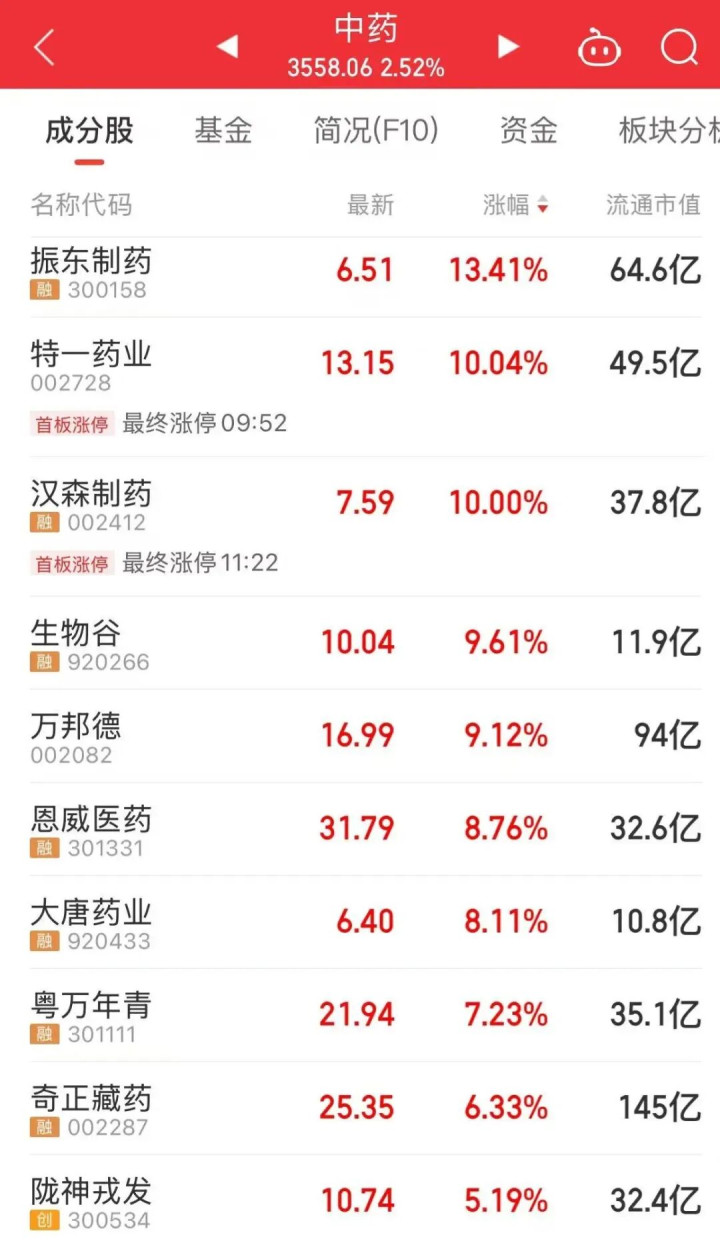 今天上午,医药股表现活跃,中药板块领涨,医药电商、创新药、化学制药等板块上涨。