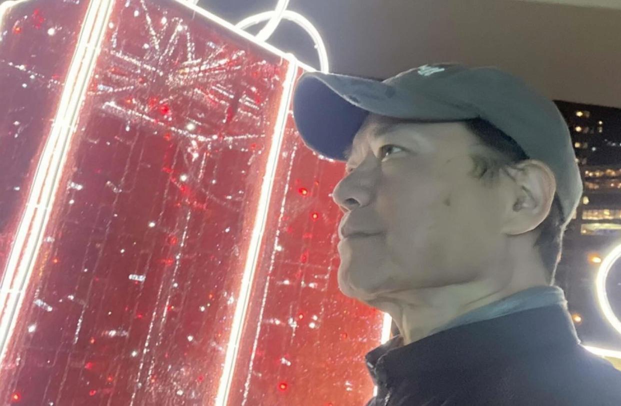 现在他晒出一张盘腿打坐的照片,说要做音疗师,帮人改善失眠、缓解疼痛、减压放松。 照片不是最近的,他上一次露面还是去年圣诞节前,穿个简单风衣戴鸭舌帽,脸上都是岁月的痕迹,但看起来挺平静。